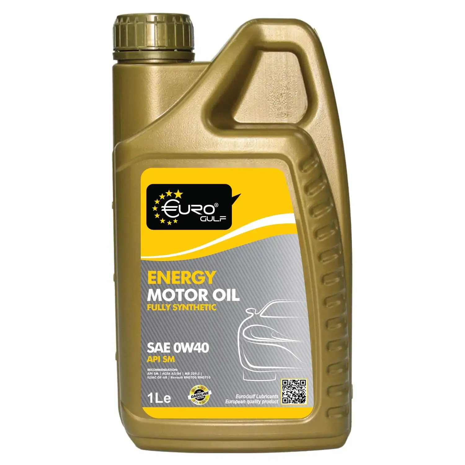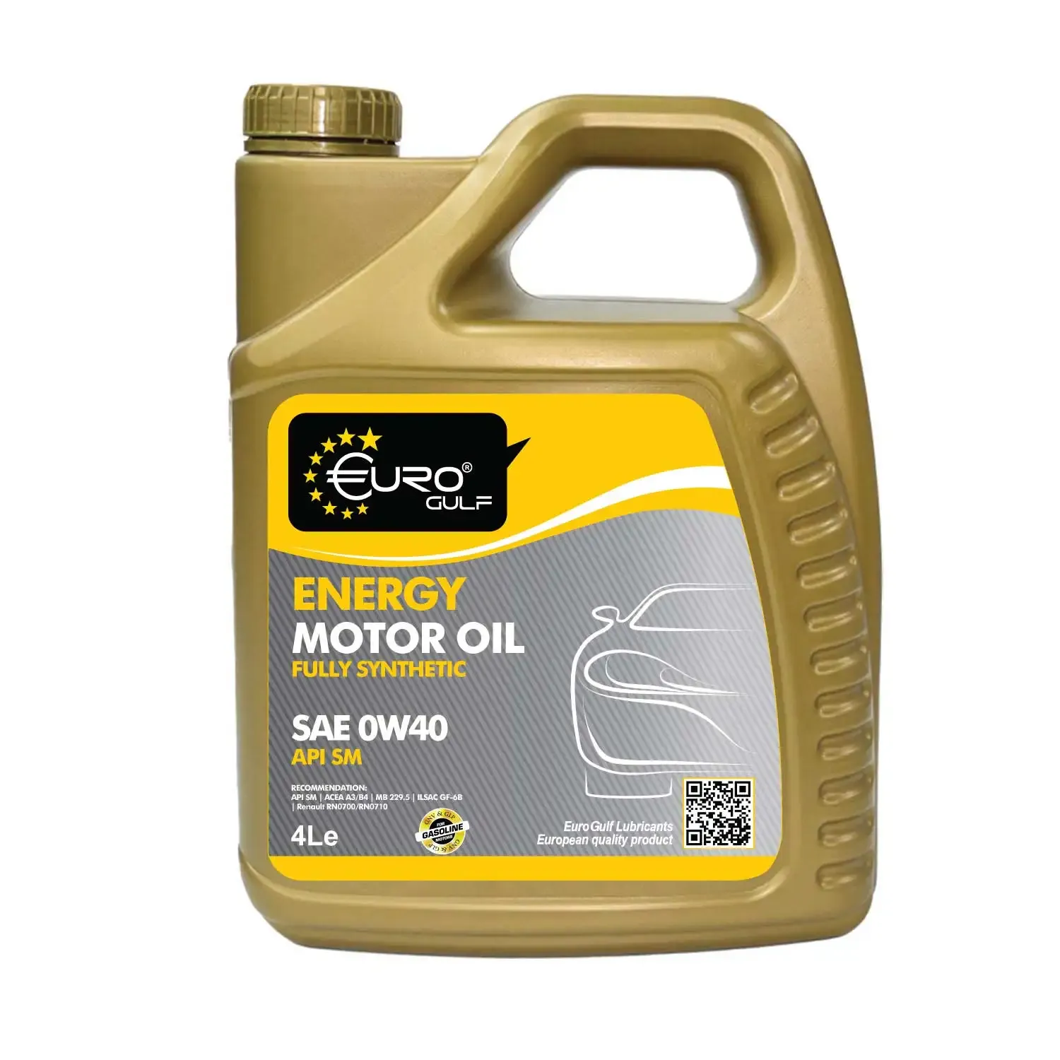 Euro Gulf Energy Motor Oil SAE 0W-40 API SM/API SN is a fully synthetic engine oil designed to deliver exceptional engine protection and performance. It provides superior lubrication, minimizes friction, and ensures optimal efficiency under extreme driving conditions. Formulated with advanced additives, it helps prevent wear, sludge, and deposit buildup, extending engine life.Application: