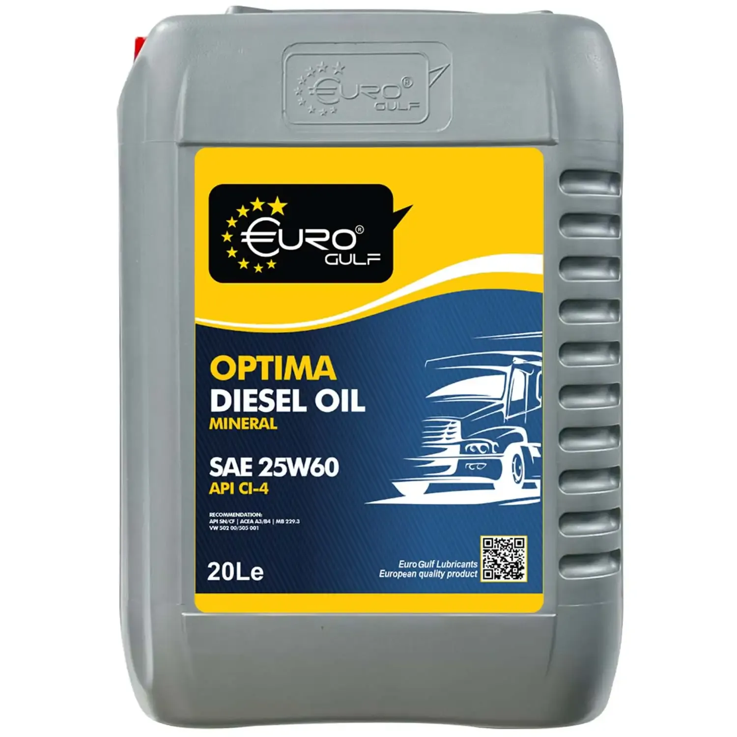 Euro Gulf Optima Diesel Oil SAE 25W60 API CI-4 is a high-performance mineral-based lubricant designed for heavy-duty diesel engines. It provides excellent wear protection, enhances engine cleanliness, and ensures optimal performance in extreme operating conditions. With superior thermal stability and oxidation resistance, this oil prolongs engine life while maintaining fuel efficiency.Application: