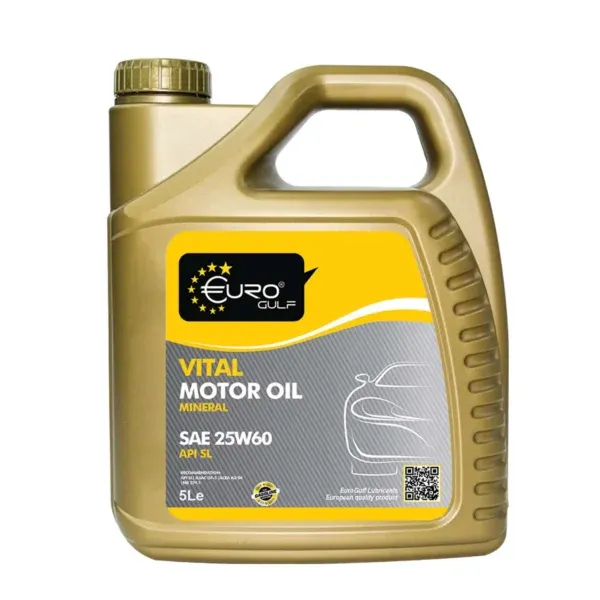 EURO GULF Vital Motor Oil SAE 25W60 API SL is a high-quality mineral lubricant designed to provide excellent engine protection and performance. It enhances engine longevity by reducing wear, maintaining optimal lubrication, and offering superior thermal stability. Ideal for demanding driving conditions, this motor oil ensures smooth engine operation while preventing sludge buildup and oxidation.Application: